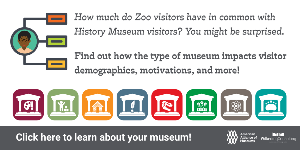 2024 Visitors by Museum Type How much do Zoo visitors have in common with History Museum visitors? You might be surprised. Find out how the type of museum impacts visitor demographics, motivations, and more! Click on the icons below to learn more. Art Museum Visitors Children’s Museum Visitors Historic Site Visitors History Museum Visitors Natural […]